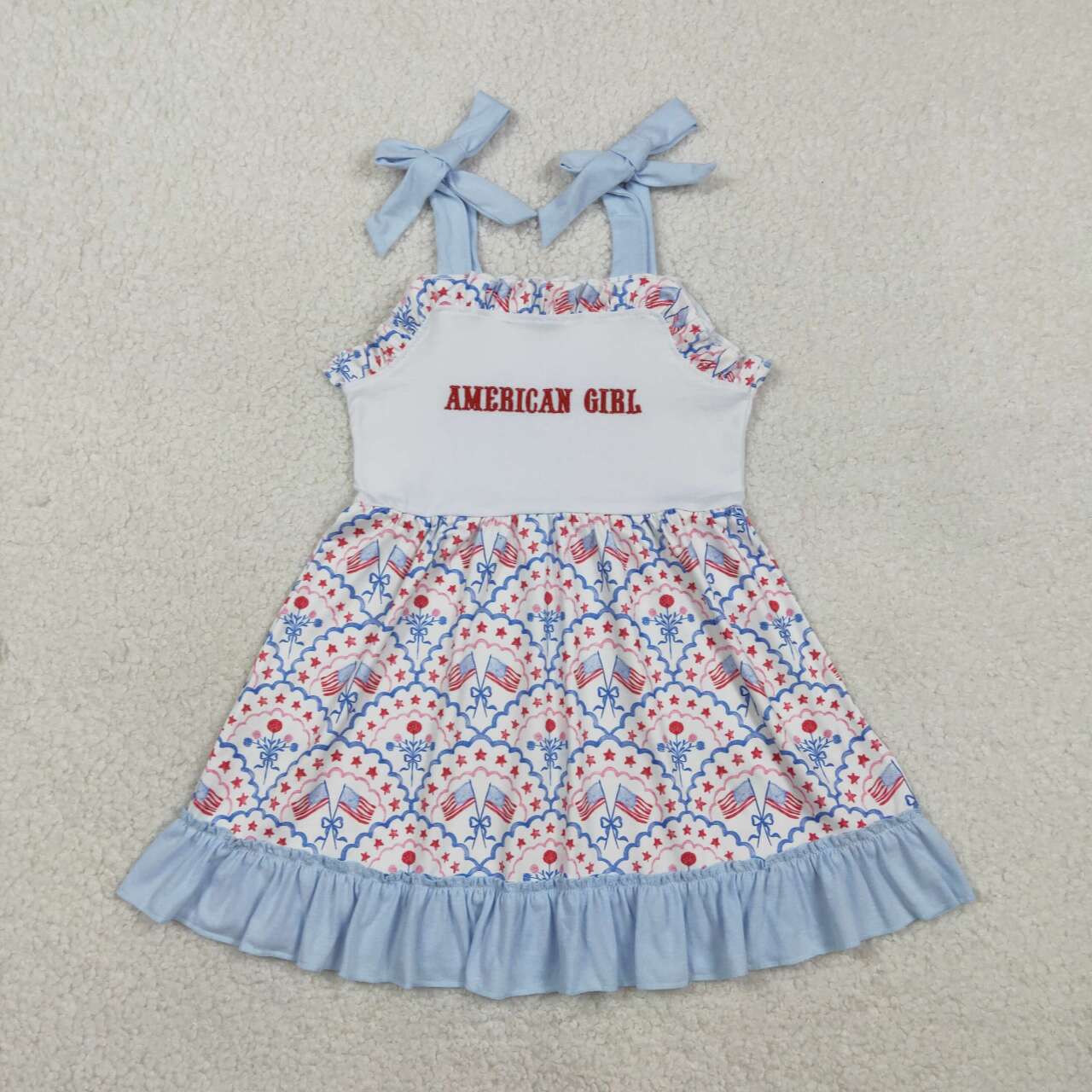 American girls July 4th holiday embroidery dress