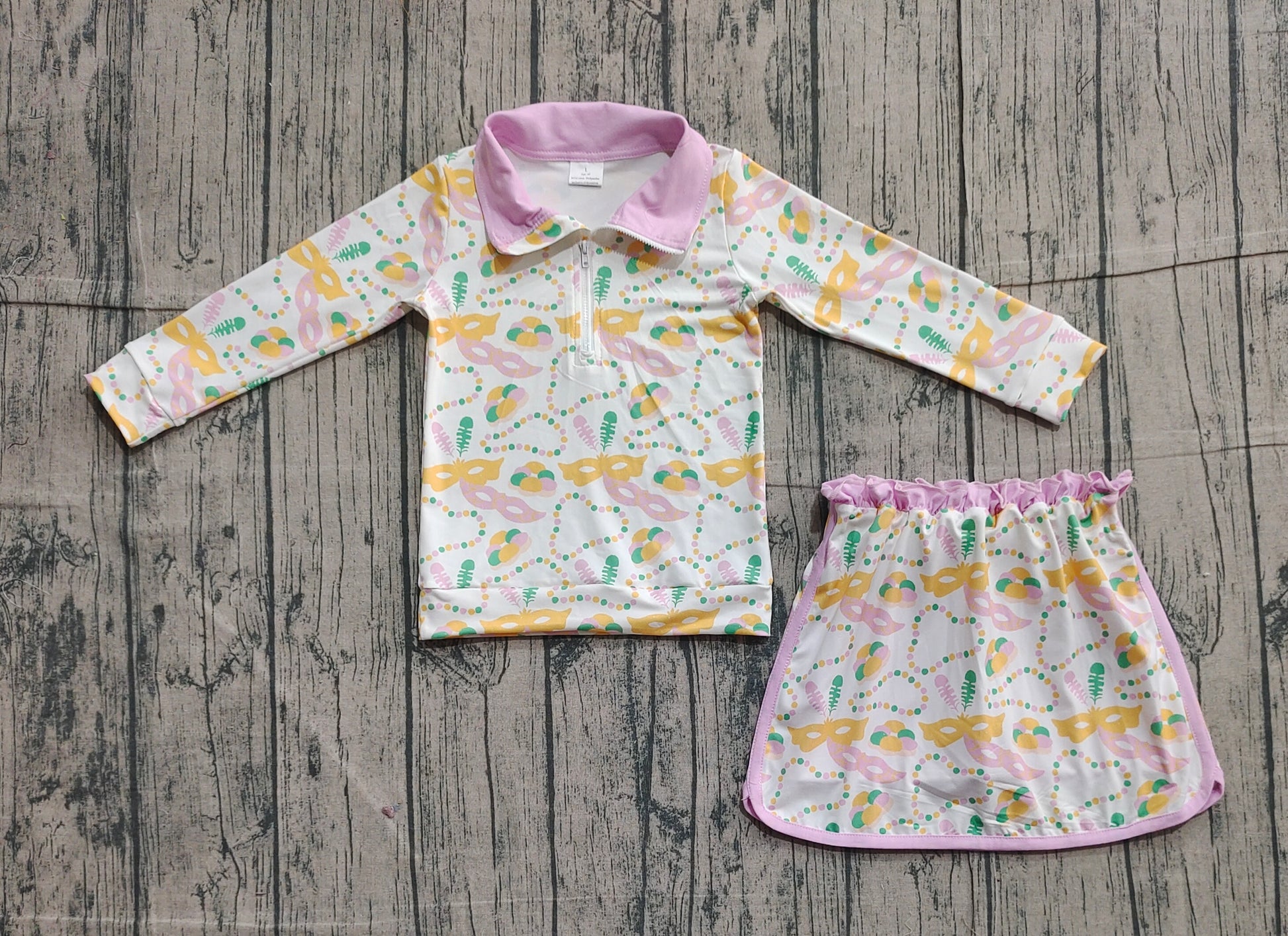 Mardi Gras mask pullover matching skirt girls outfit preorder