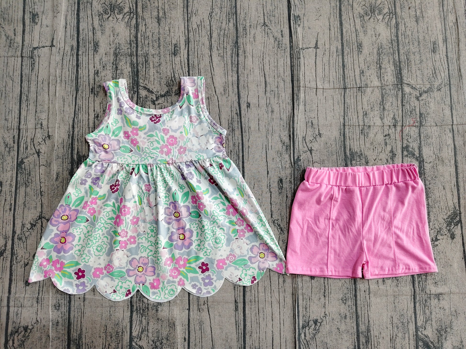 Pink blue floral top matching shorts girls summer outfit preorder
