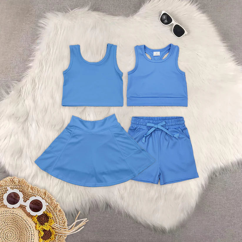 Baby girls blue active wear athletic summer yoga skirt outfit