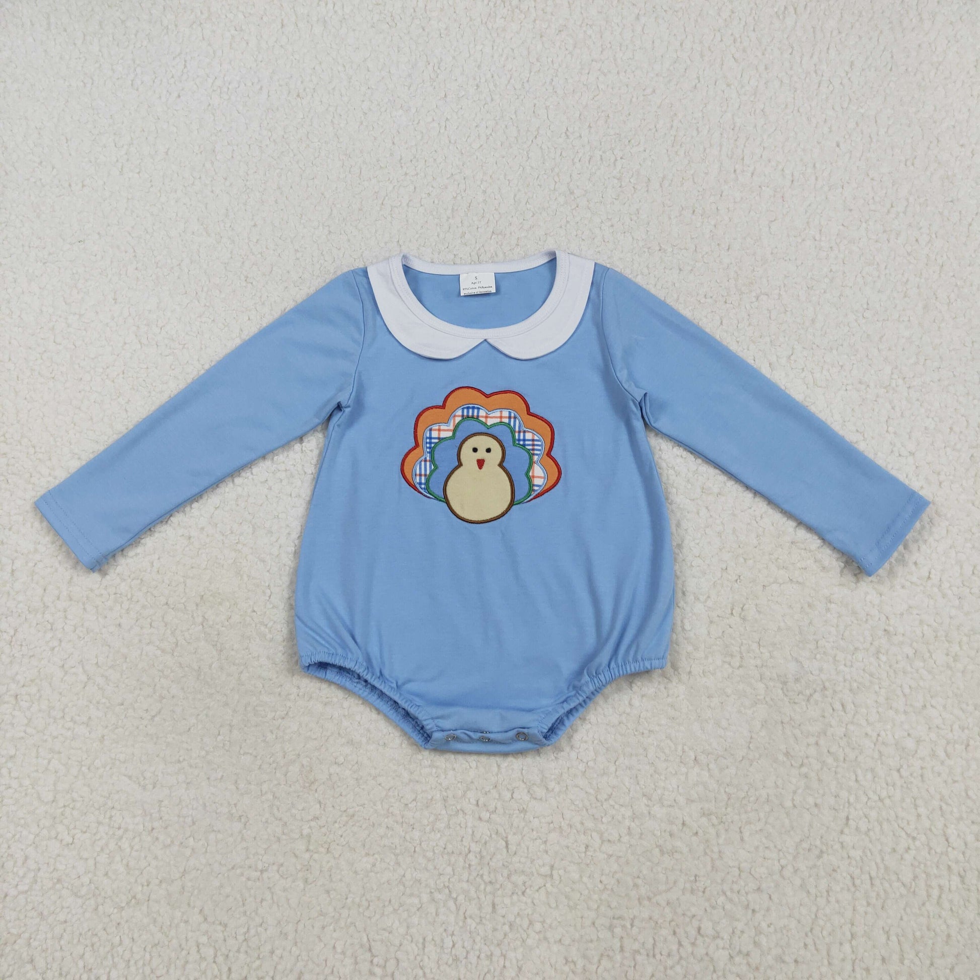 Baby girls embroidery Thanksgiving turkey tunic top matching pants clothes
