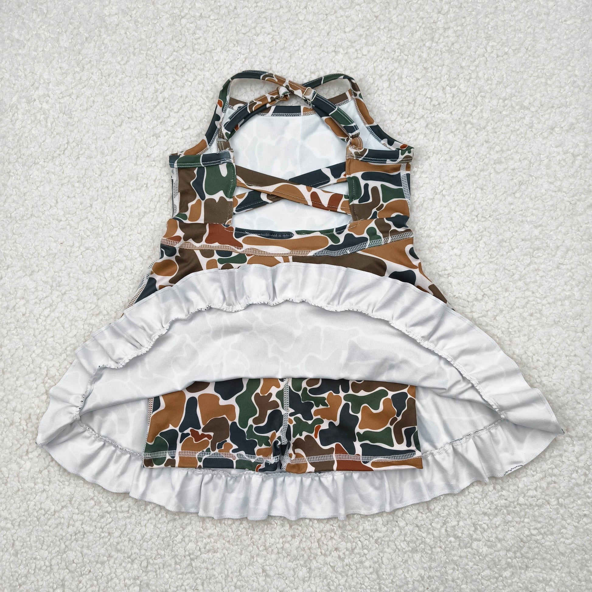 Baby girls grey camo design active wear athletic summer yoga skirt dress
