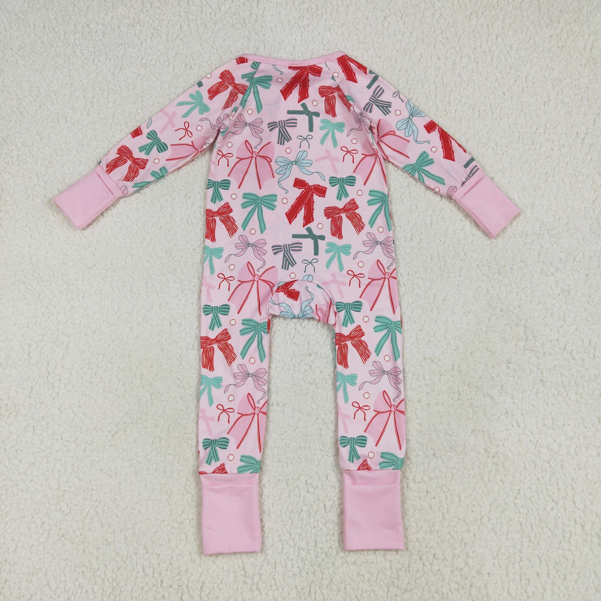 Christmas red green bow girls long sleeve matching outfit