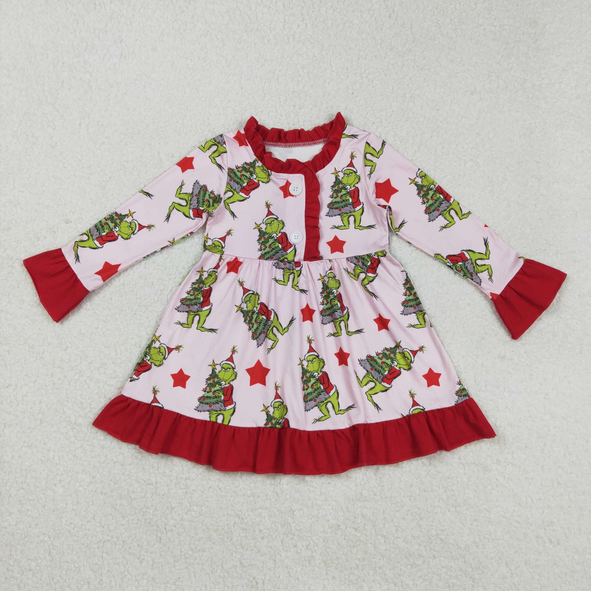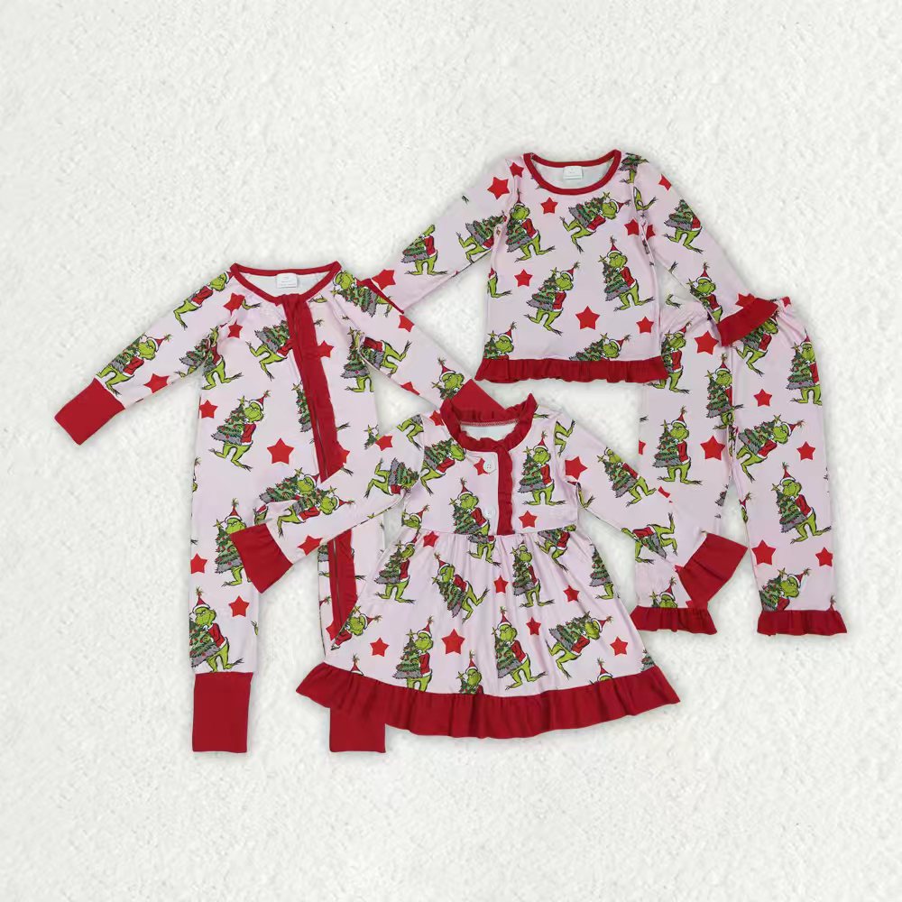Christmas tree green face kids long sleeve matching pajama set