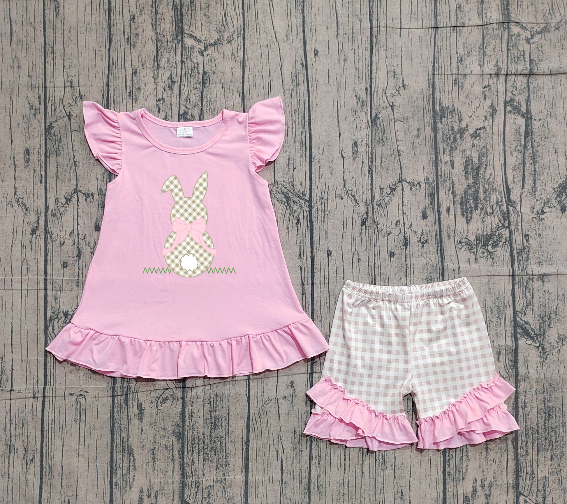 Easter embroidery bunny brown gingham outfit preorder