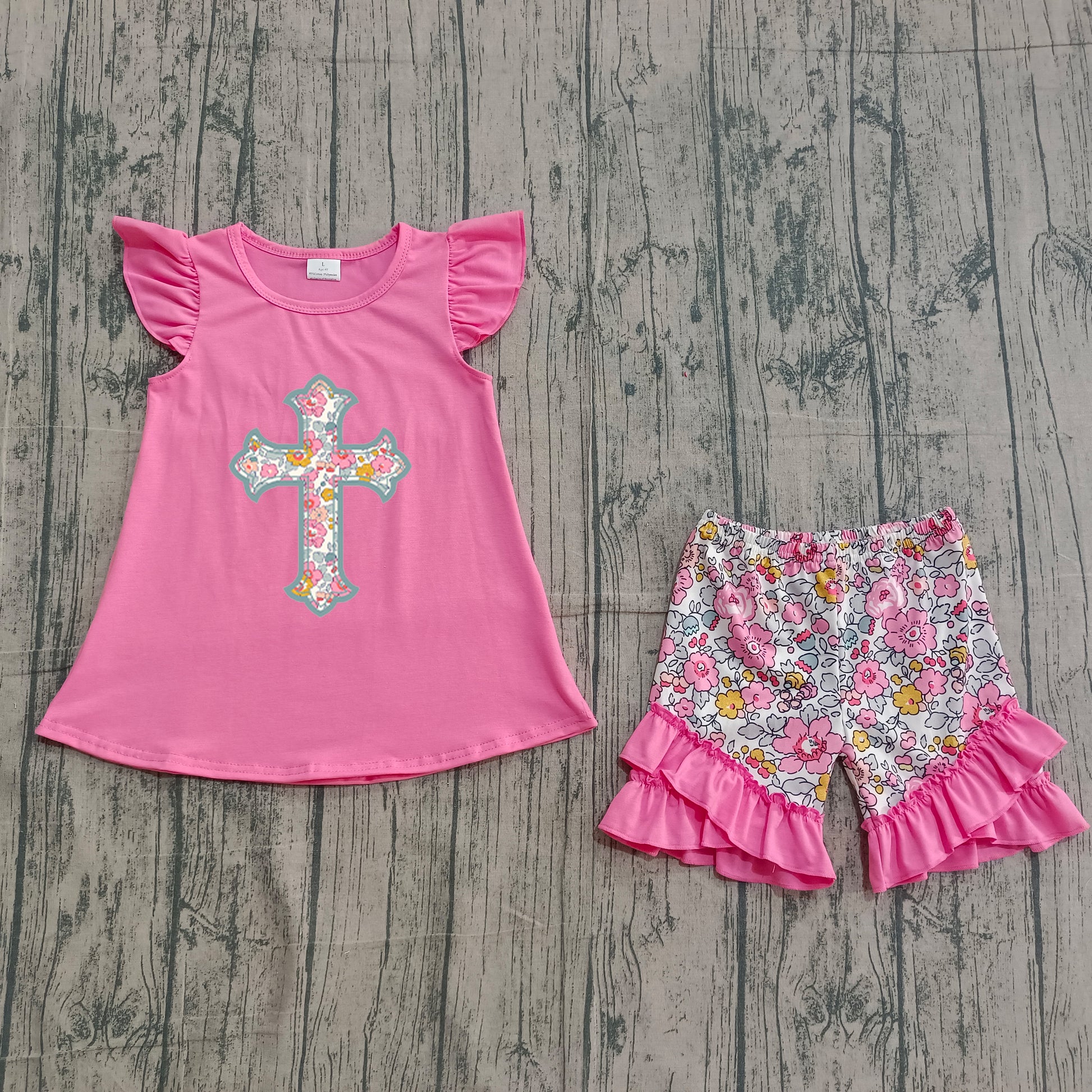 Easter floral cross embroidery top matching shorts girl summer outfit preorder