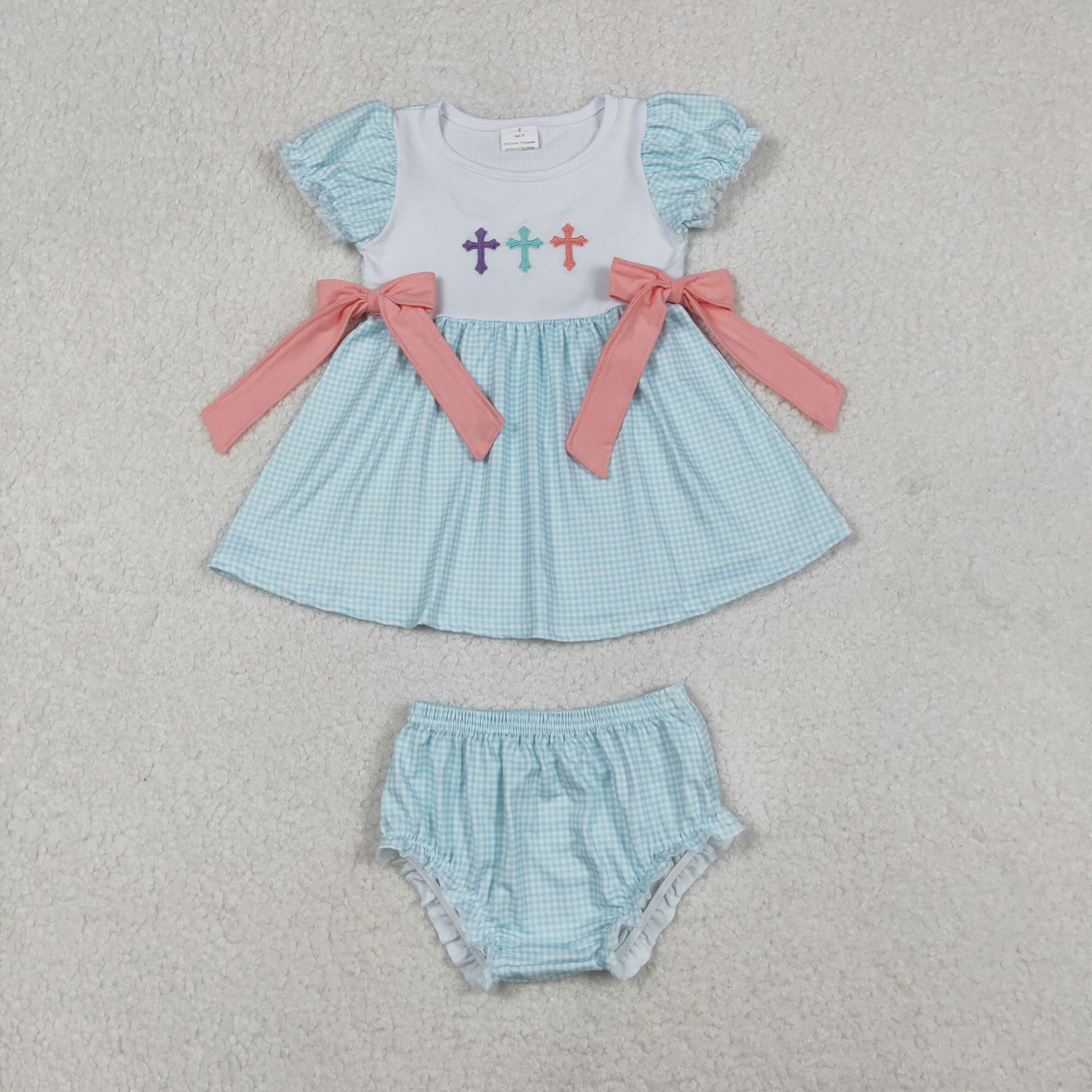 Embroidery Easter cross girls short sleeve dress
