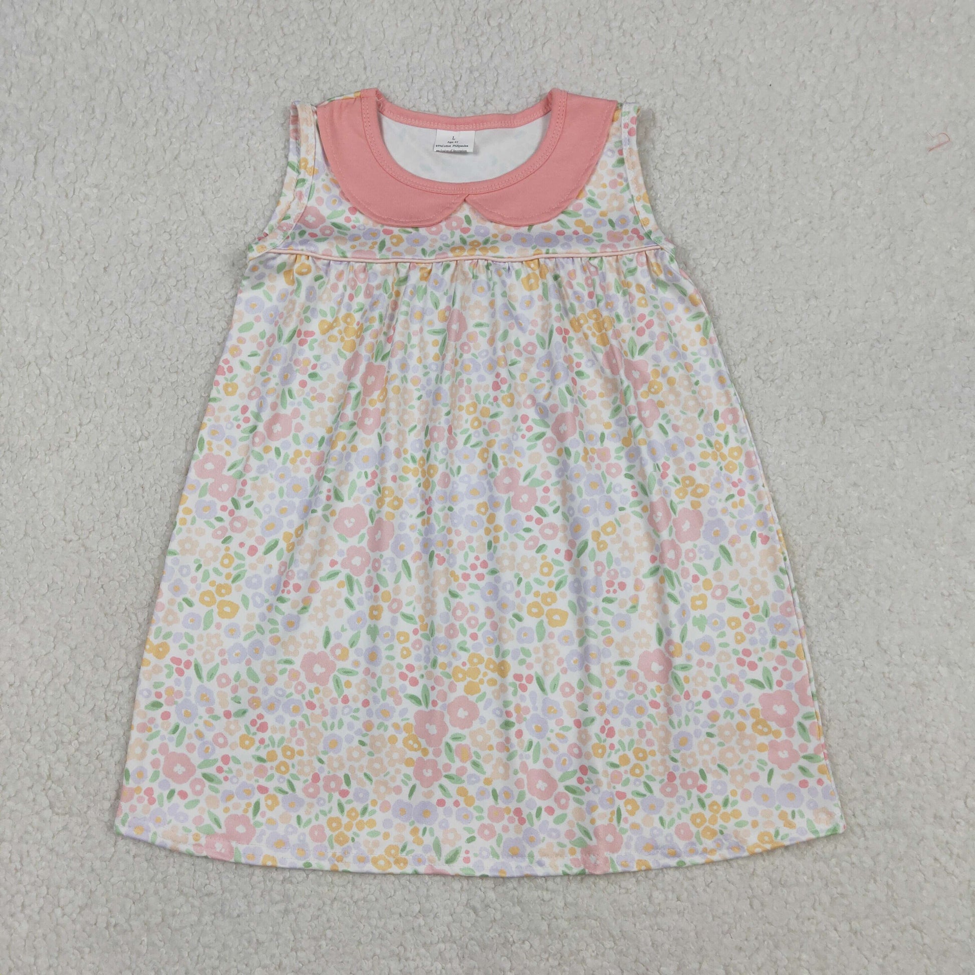 Pink flowers girls short sleeve dress