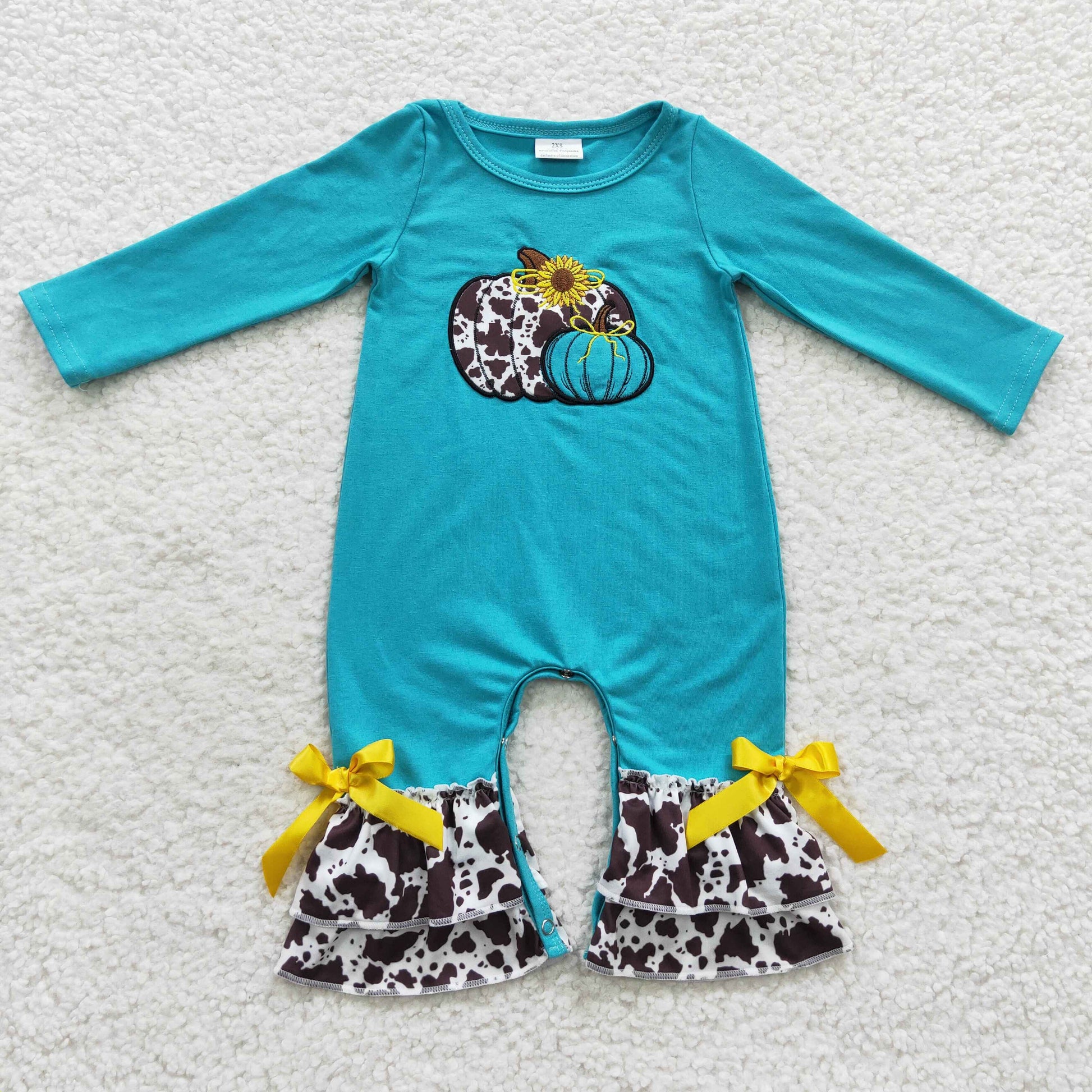 Toddle girls embroidery cowhide pumpkin romper